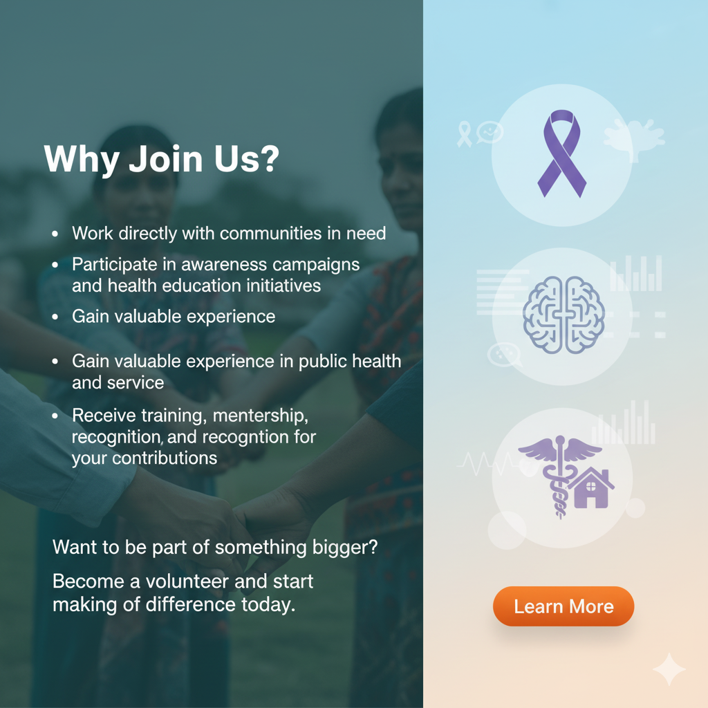 Whether you’re a student, professional, or community member — your time and passion can help us spread awareness about chronic diseases, promote healthy behaviors, and support meaningful research in rural and urban areas alike.